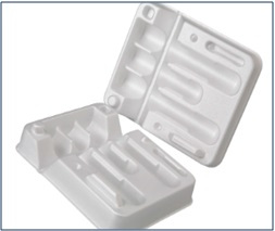 * Custom thermoformed medical trays secure and protect devices after assembly until practitioner removal.